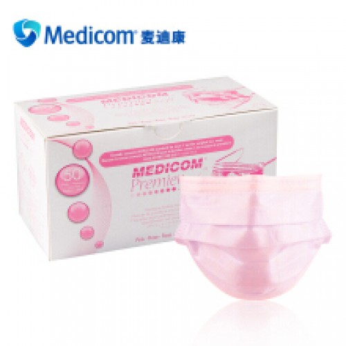 Medicom麦迪康一次性口罩医用防粉尘防异味口罩男女成人三层过滤无纺布透气50只/盒 #2116浅粉色